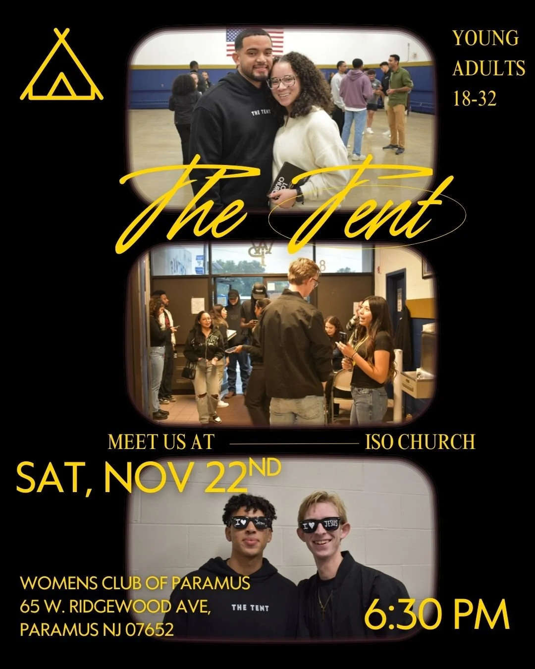 The Tent is a young adult gathering inspired by Exodus 33, where Moses met with God in the tent and experienced deep intimacy with the Lord. We gather once a month to worship together, hear the word of God and fellowship. Just as Moses encountered God in a personal way, our desire is for young adults to experience this same closeness with the Lord.